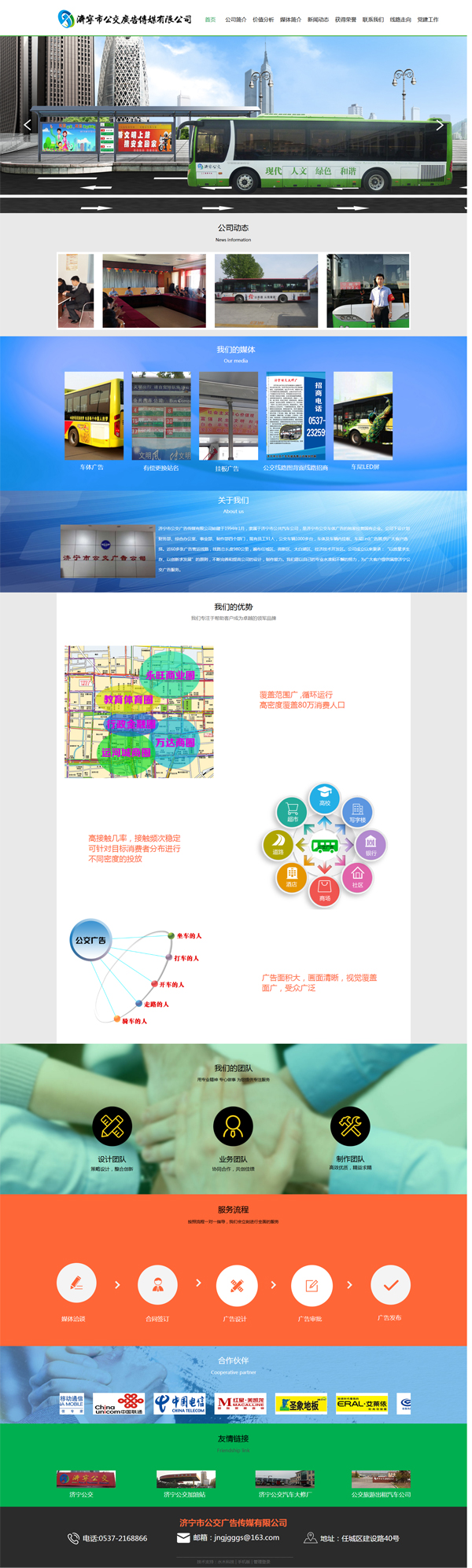濟寧市公交廣告?zhèn)髅接邢薰臼冀ㄓ?994年1月,隸屬于濟寧市公共汽車公司,是濟寧市公交車體廣告的獨家經營國有企業(yè)。公司下設計劃財務部、綜合辦公室、事業(yè)部、制作部四個部門,現有員工91人,公交車輛1000多臺,車體及車輛內掛板、車尾Led廣告屏,供廣大客戶選擇。近60多條廣告營運線路,線路總長度980公里,遍布任城區(qū)、高新區(qū)、太白湖區(qū)、經濟技術開發(fā)區(qū)。公司成立以來秉承:“以質量求生存、以創(chuàng)新求發(fā)展”的原則,不斷完善和提高公司的設計,制作能力。我們愿以自己的專業(yè)水準和不懈的努力,為廣大客戶提供滿意濟寧公交廣告服務。